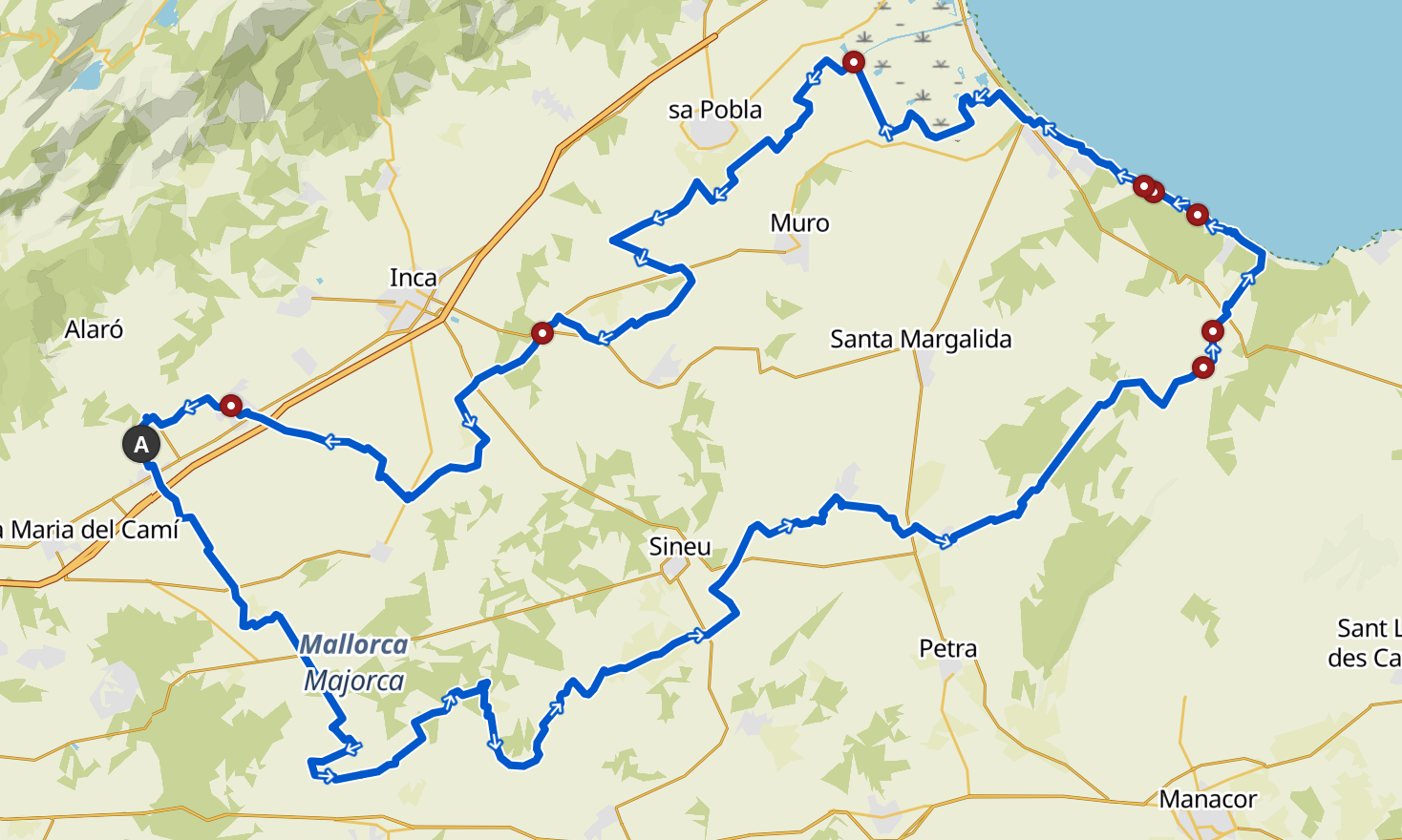 Die große Tour stand bevor: 130 Kilometer von Consell über Alaró, mit einem Höhenprofil von 710 Metern. Der frühe Morgen begrüßte uns mit dem typisch mallorquinischen Licht, das die Natursteinmauern in warmes Gold tauchte. Vom Bahnhof Consell/Alaró starteten wir unsere Rundtour, die uns durch einige der schönsten Ecken der Insel führen sollte.
